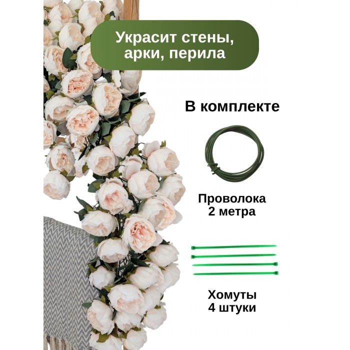 Цветы искуственные Пионы каскадные (37 штук, 120 см, цветок 10 см) нежно розовый контр. середина 265899