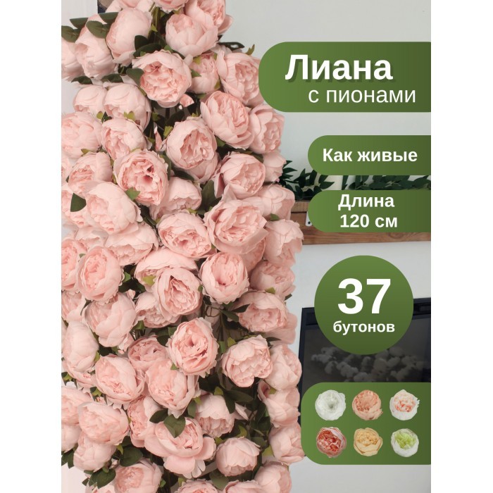 Цветы искуственные Пионы каскадные (37 штук, 120 см, цветок 10 см) нежно розовый 265900