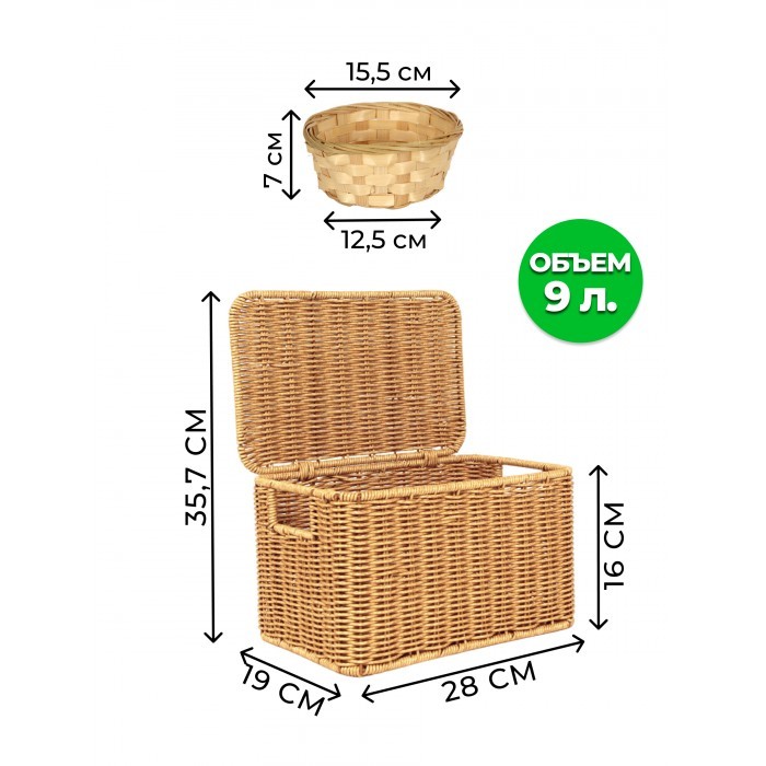 Корзина плетеная с/крыш S 290*190*160-mpl-fbo + салатник 16*7см иск/ротанг, песочный 261624
