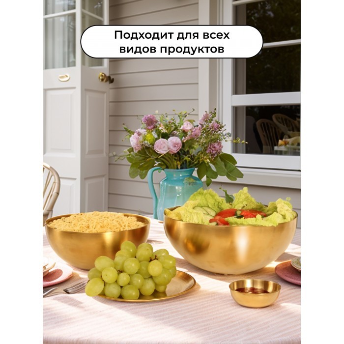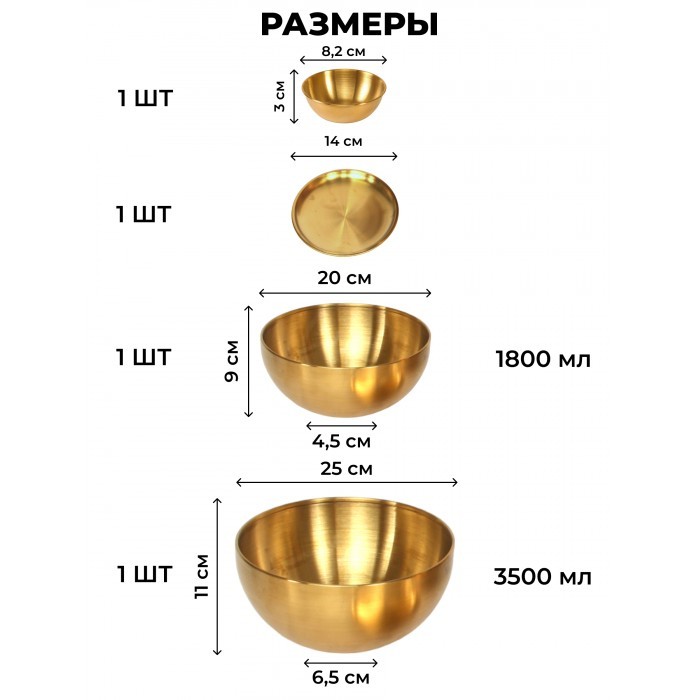 Набор Мисок из нержавеющей стали 2шт (20см-1шт+25см-1шт +блюдце 14см- 1шт+соусник 8, 5 см-1 шт ) золото 265458