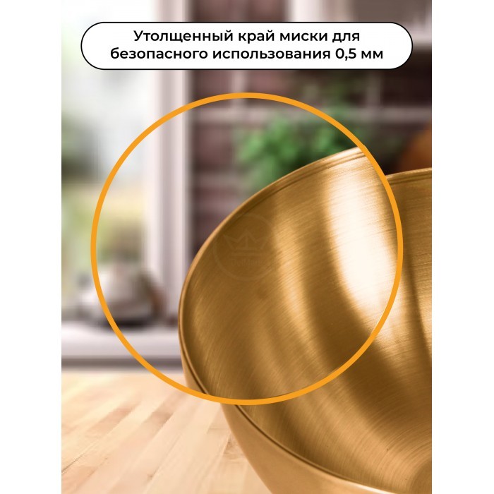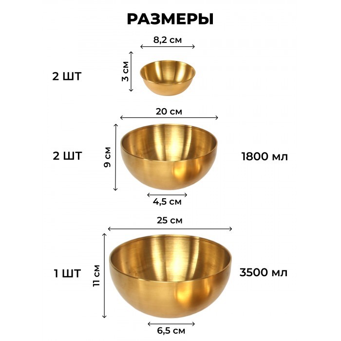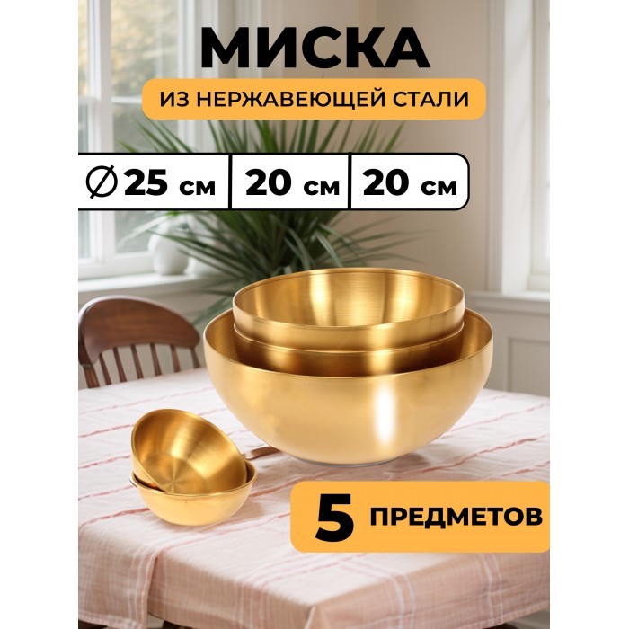 Набор Мисок из нержавеющей стали 5пред (20см-2шт+25см-1шт +соусник 8, 5 см-2 шт ) золото 265459