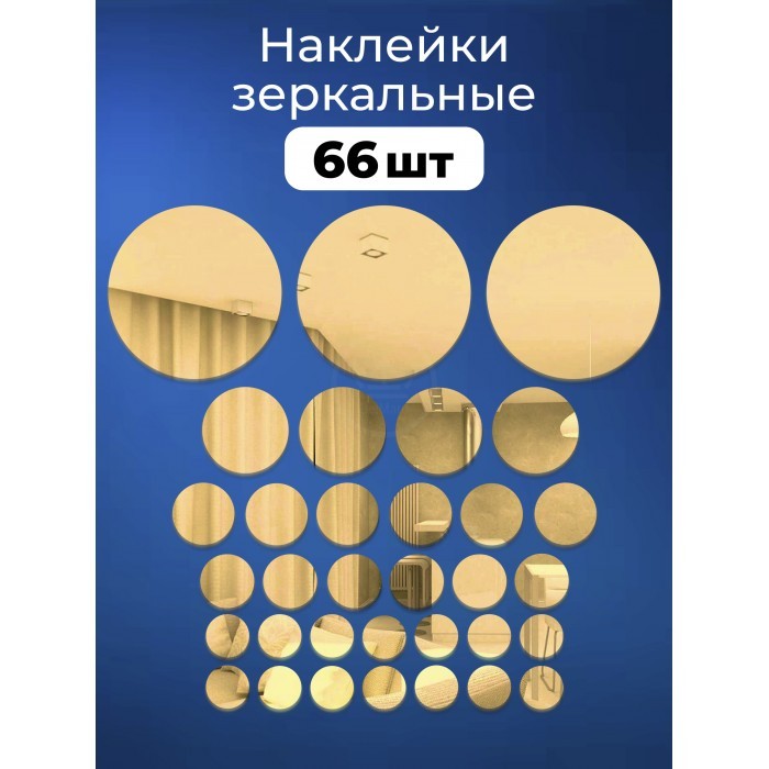 Интерьерные зеркальные наклейки Круги-2 набора ( 64/66 штук ) золото 266104