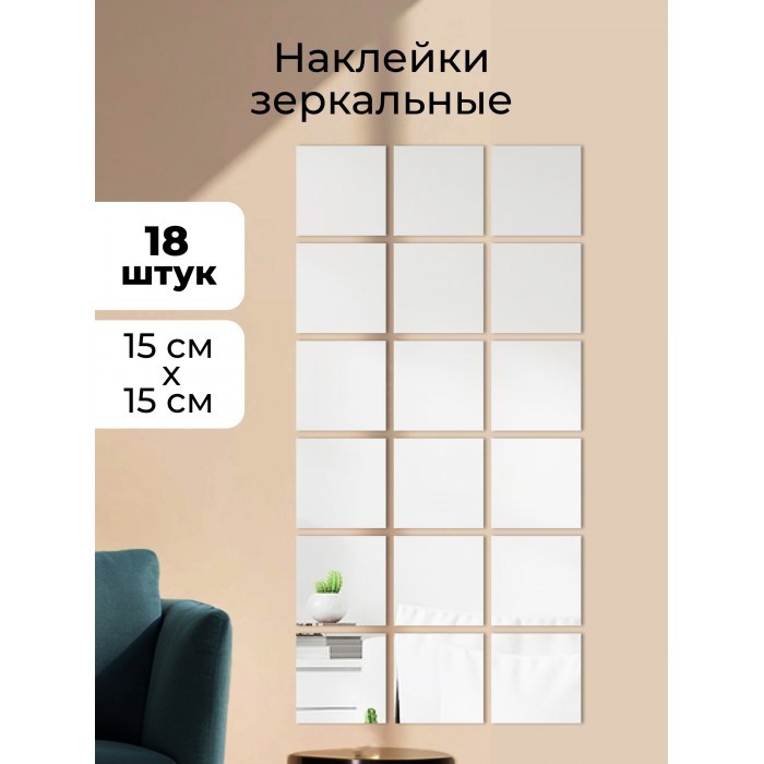 Интерьерные зеркальные наклейки Квадрат 18 шт ( 15*15 см ) 265539