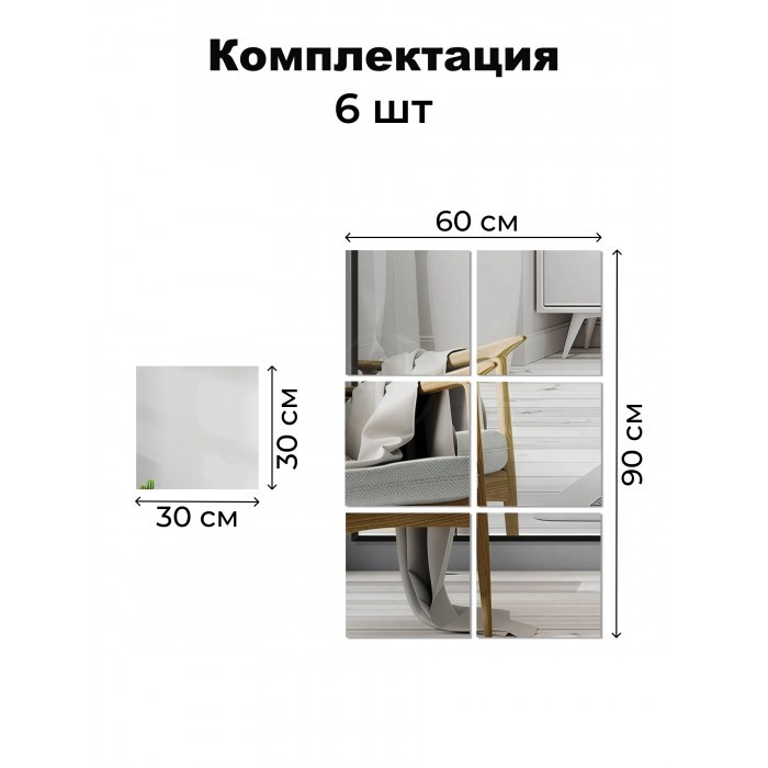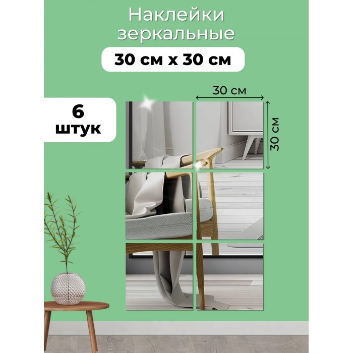 Интерьерные зеркальные наклейки Квадрат 6 шт ( 30*30 см ) 265981
