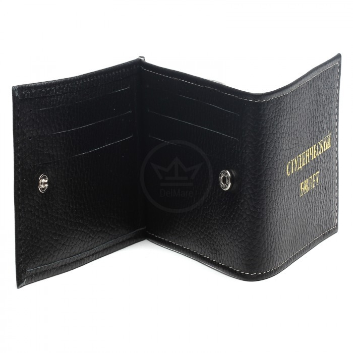 Обложка Croco-у-603 (для студ.билета+карточки) натуральная кожа черный флотер (40/1) 218274